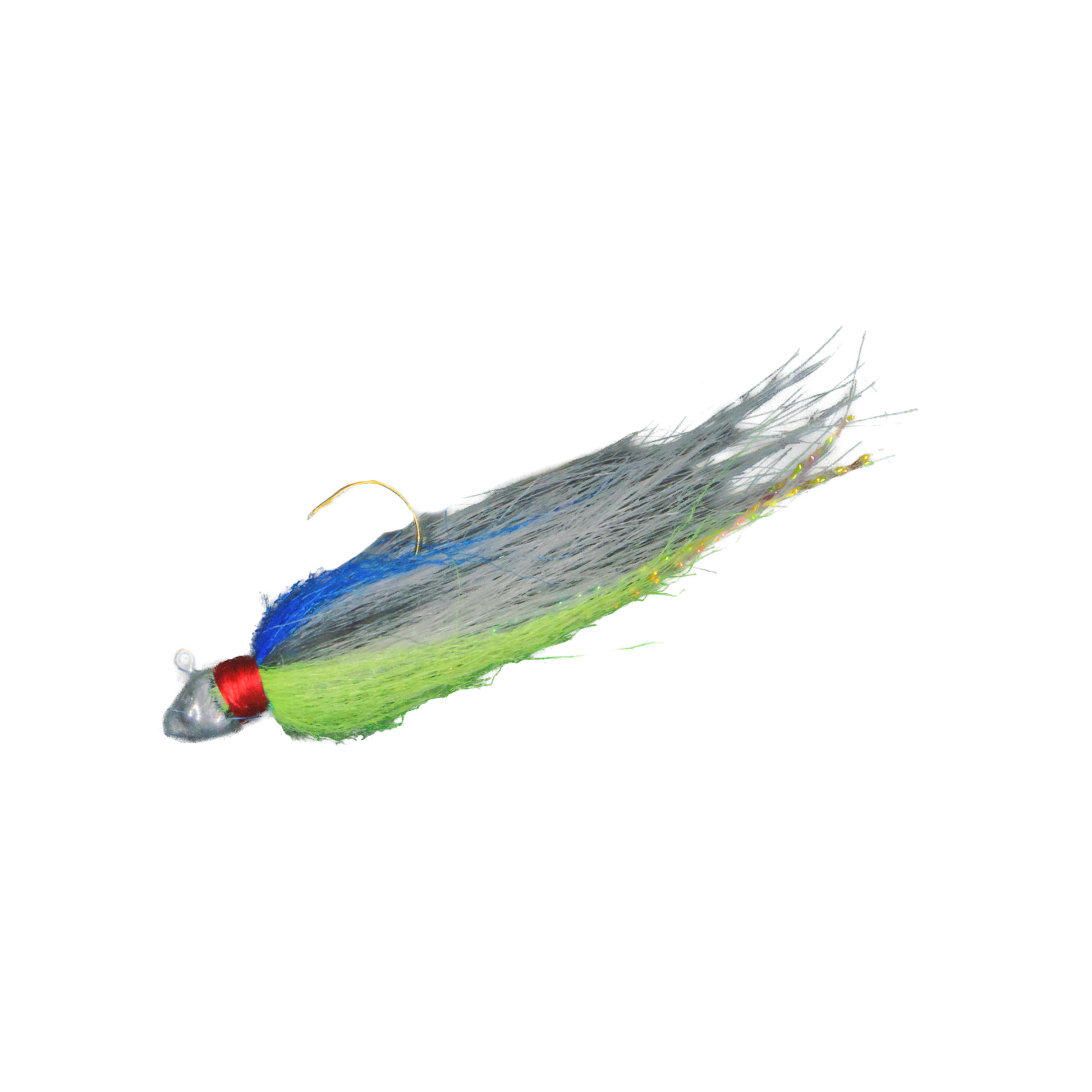 This DHT Float & Fly jig is tied with craft hair, a synthetic fiber renowned for its light weight, water resistance, and color capacity. Craft hair flies are an excellent all purpose Float & Fly choice. Our fly is offered in two sizes – 1/16 oz with a #2 Mustad hook.