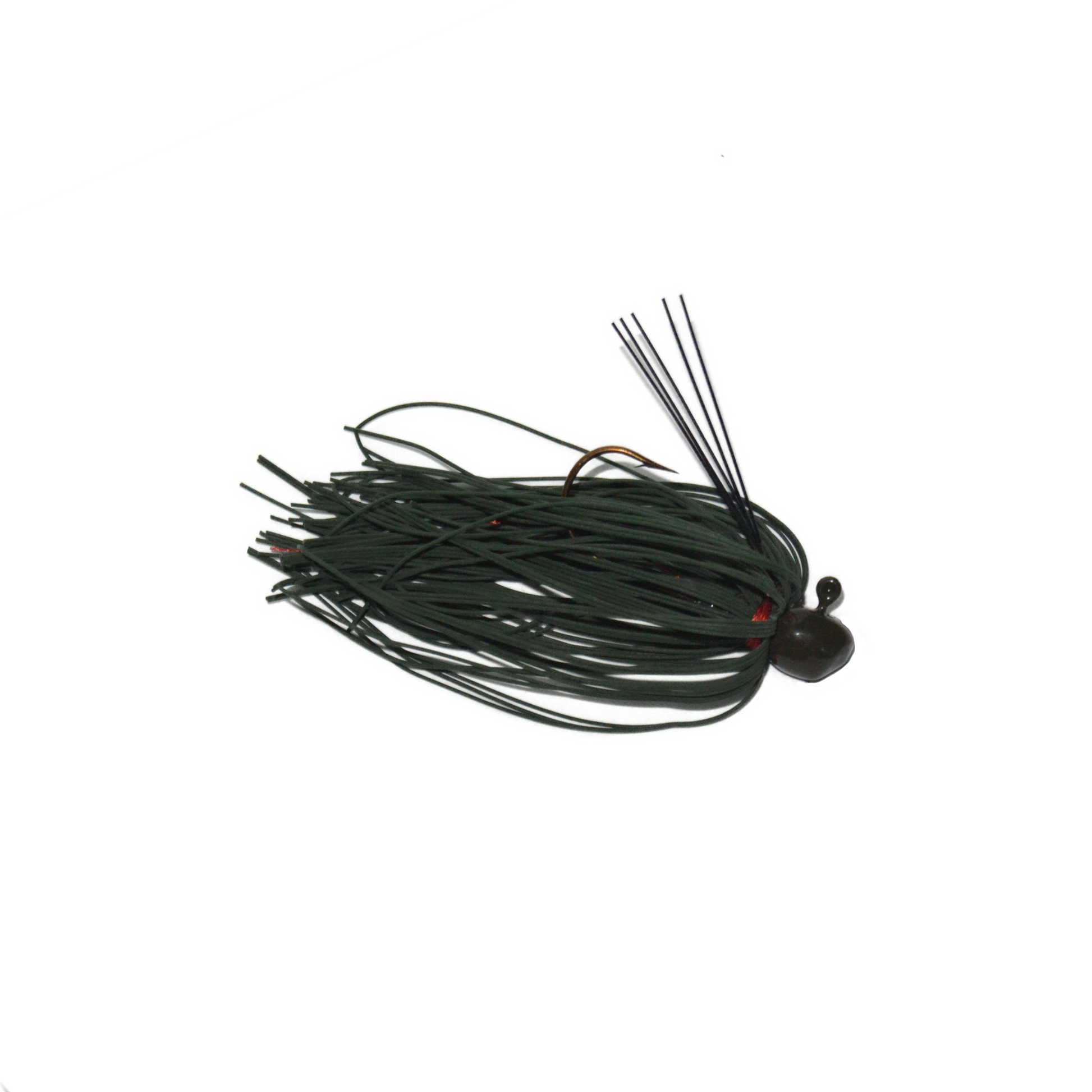 This remarkable jig's hand tied living rubber skirt really gets the fish’s attention and is a tougher material that will hold up to the abuse of being cast into weed beds and thru underwater structures. The skirting gives the jig a extra large profile when bounced of the bottom that is irresistible to bass and other species of fish. The specially modified peanut head is designed to more naturally mimic the fall of prey to the bottom. Thrown with your favorite trailer, this little wonder is sure to put fish in your boat.